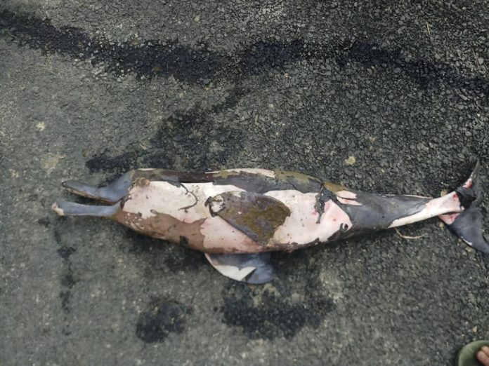 Featured image: The burnt carcass of an endangered Gangetic river dolphin in Dibru river after the oil spill, Assam | Photo: PangSau